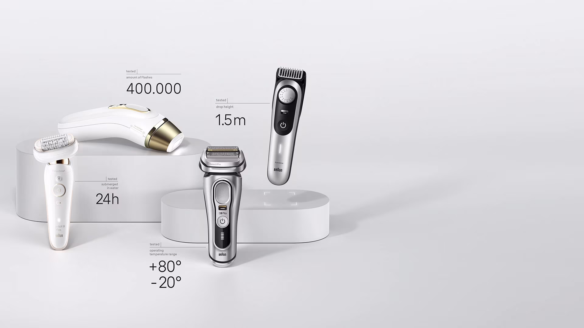 Braun shavers are drop tested up to a height of 1,5 meters to make sure they work properly, even after impact.